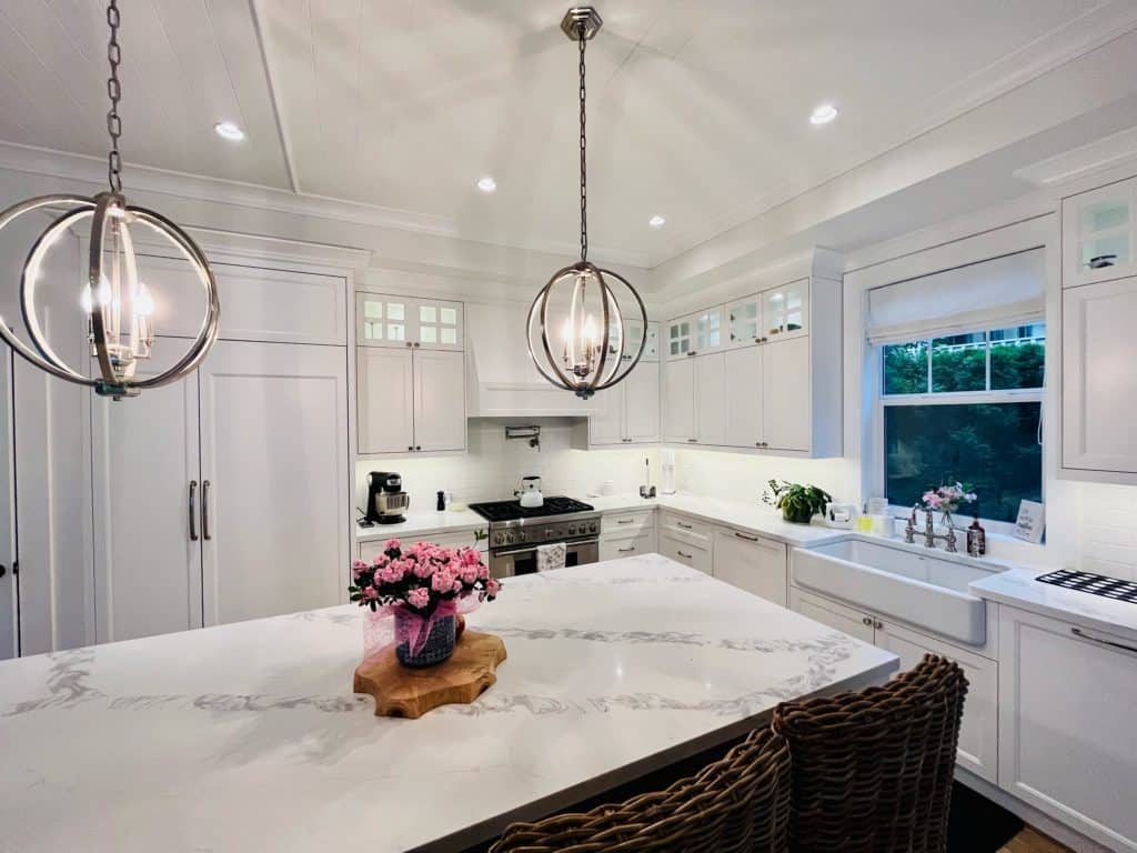 - Lighting fixtures: Under-cabinet lights, pendant lights over the island, and recessed ceiling lights.